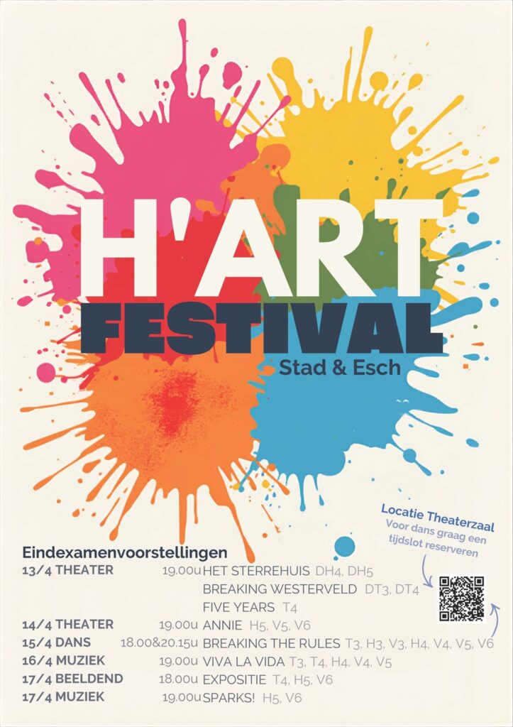 Op woensdag 15 april dansen leerlingen choreografieën naar aanleiding van het thema ‘Breaking the Rules’. Het is een absolute aanrader om (één van) de voorstellingen te bezoeken, waar leerlingen zullen shinen en in hun kracht staan.