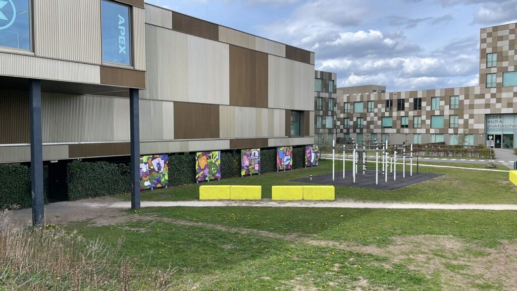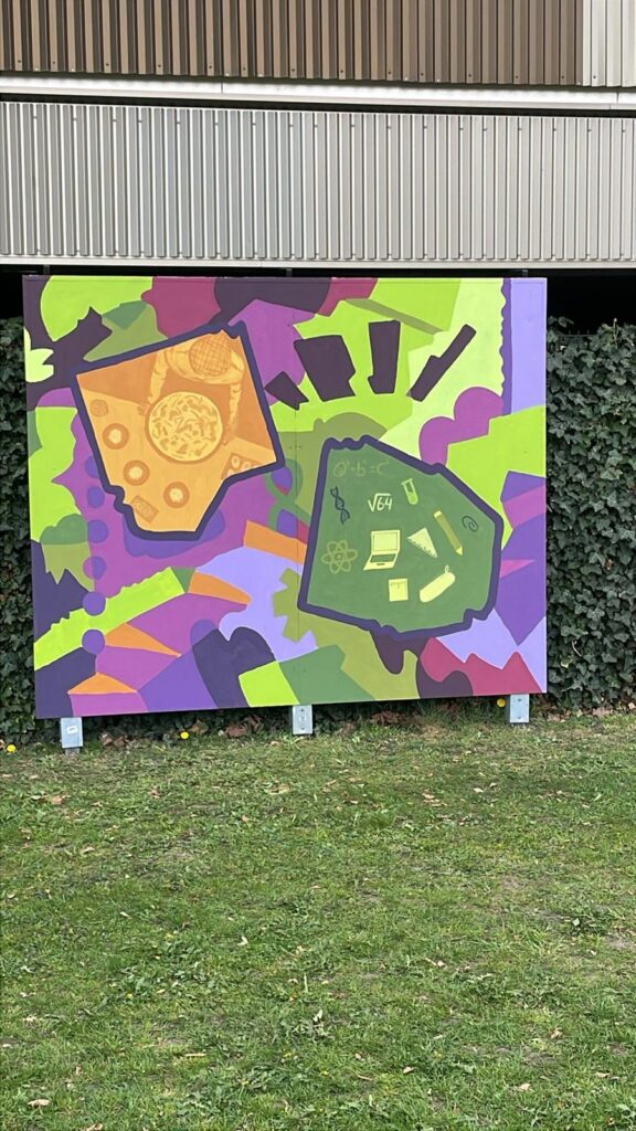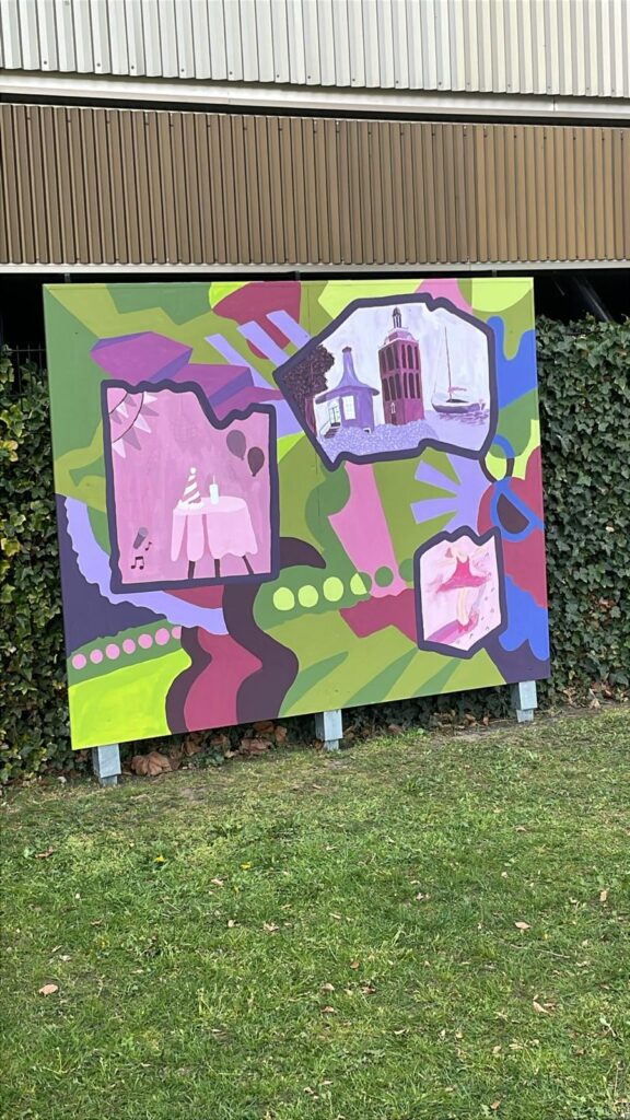 Een grote, steeds veranderende muur vol kleur, vormen en verhalen. Geen vast beeld, maar een oppervlak dat telkens opnieuw wordt ingevuld. Wat je ziet is altijd in beweging en nooit hetzelfde.