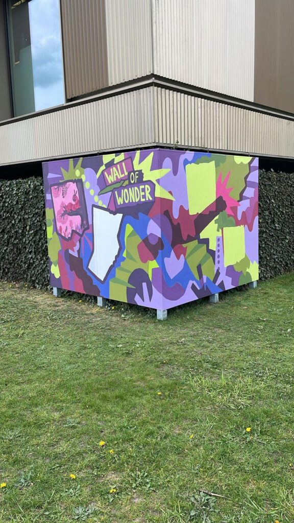 De Wall of Wonder is ontstaan vanuit de overtuiging dat creativiteit een vaste plek hoort te hebben binnen het onderwijs. In samenwerking met Stichting Muurkunst Meppel en met steun van Stichting Compenta is deze plek op Ezinge gerealiseerd. Onder begeleiding van kunstenares Vera Vos werken leerlingen hier aan hun eigen beeldende projecten. Ze leren ideeën vertalen naar beeld, experimenteren met technieken en ontwikkelen hun eigen stijl. De muur verandert daardoor continu van karakter en groeit mee met de makers van dat moment. Waar andere kunstwerken op Ezinge een verleden meebrengen, laat de Wall of Wonder juist zien wat er nu ontstaat. Het is geen gered object, maar een levend kunstwerk dat elke dag opnieuw wordt gemaakt en daarmee een blijvende plek geeft aan creativiteit binnen de school.